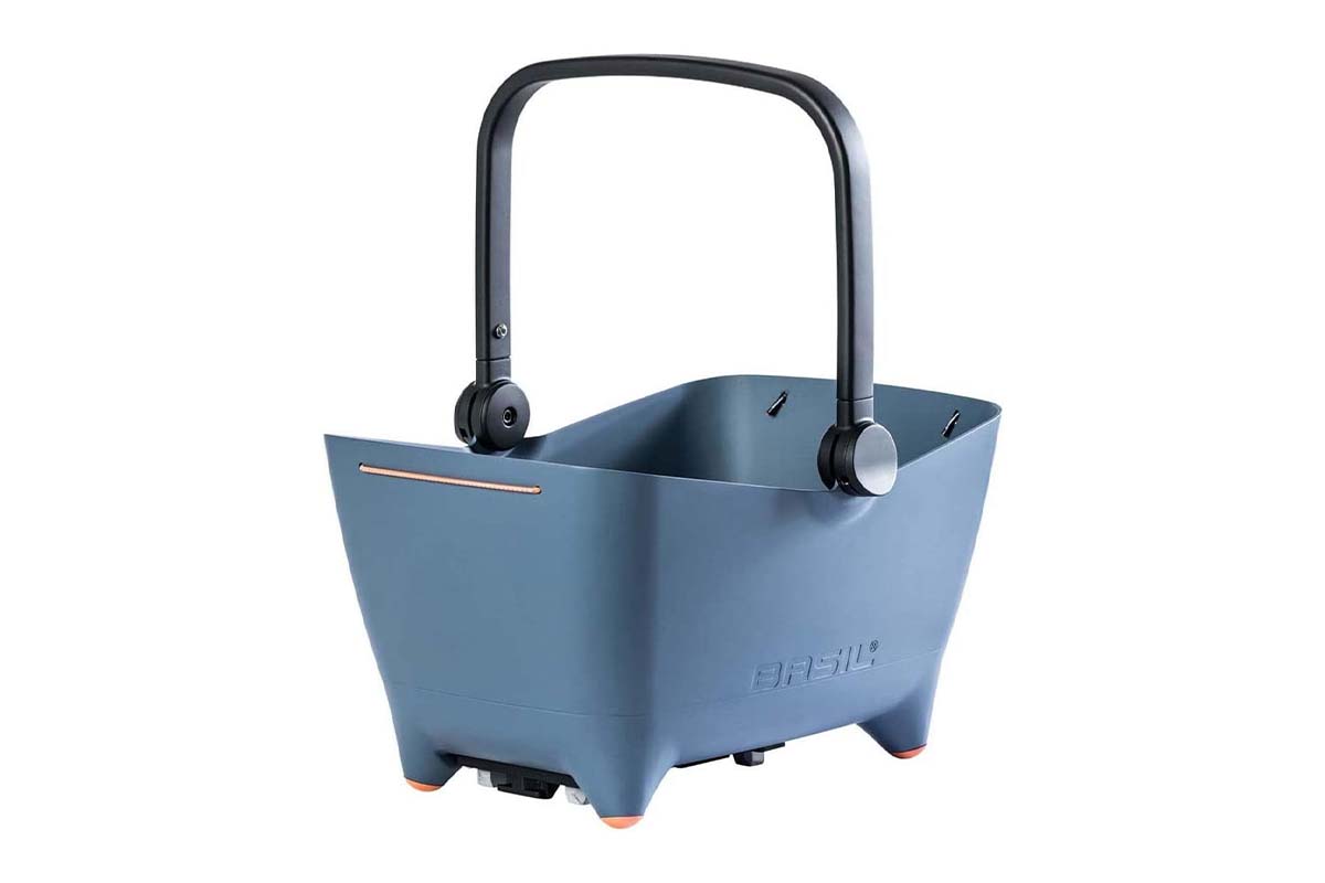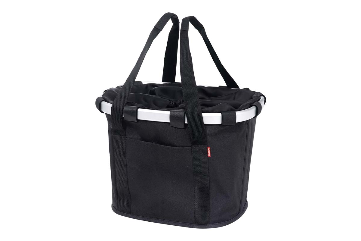 Ein klassisches Körbchen für Einkäufe oder die Handtasche ist der bikebasket von Reisenthel Er sollte ein Volumen von 15 Litern aufweisen und bis zu 15 Kilogramm tragen können. Der Warenkorb wird durch einenstoffbezogenen Verschluss mit Schnur verschlossen, um sicherzustellen, dass die Inhalte nicht herausrutschen. Zur Befestigung wurde das sogennante Klickfix-System ausgewählt, bei dem ein passender Halter an der Lenkstange montiert werden muss.