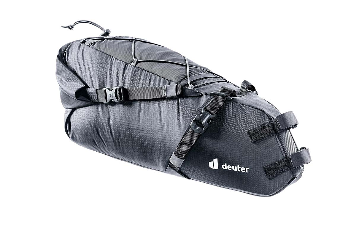 Satteltaschen, wie die Mondego SB 16 von Deuter Die von Bikepackern zärtlich als Arschraketen bezeichneten Taschen bietet Platz für Kleidung, Handtücher und ähnliche Utensilien. Diese werden direkt an das Sattelrohr montiert und sollten im Unterschied zu herkömmlichen Tragtaschen eine bessere Luftdynamik gewährleisten.